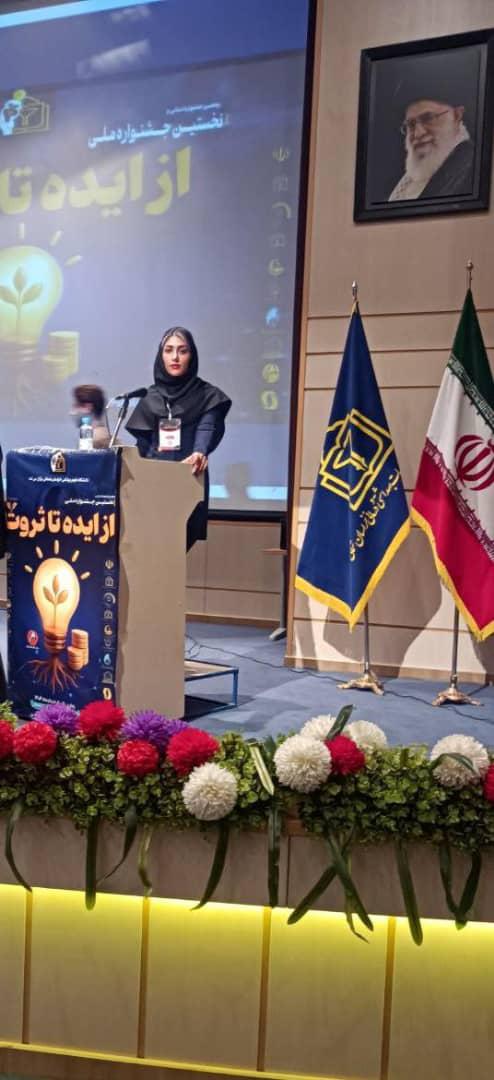 مقام برتر جشنواره ملی از ایده تا ثروت در دستان سرکار خانم فرنیا محمدی فر دانشجوی مقطع دکترای مهندسی بافت دانشگاه علوم پزشکی فسا